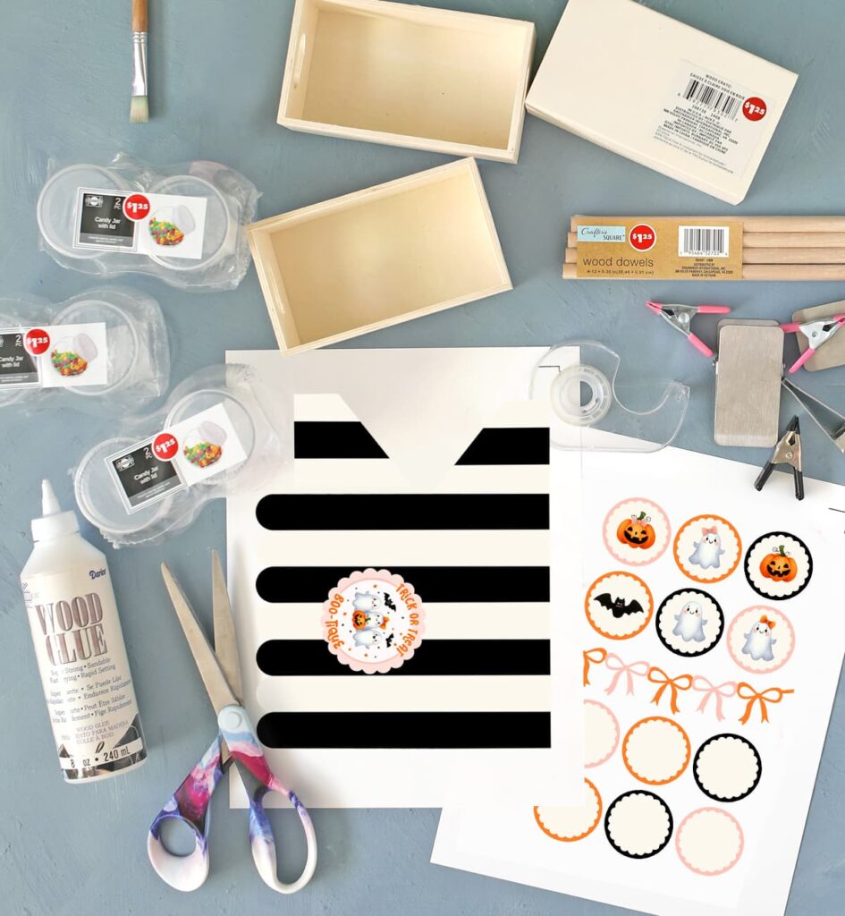 Make a Trick Or Treat Boo-tique mini candy shop using supplies from Dollar Tree. This is a fun and easy Halloween craft!