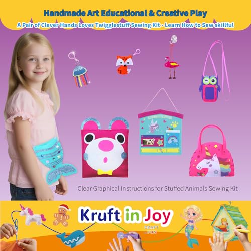 Specification: Kruft in Joy My First Sewing Kit Fun Felt Craft for Kids-8 Easy DIY Project twiggle Stuffed Animal Doll Plush Pillow Bag Charms Unicorn Mermaid Bear Fox Owl,Learn to Sew Embroidery Gift for Girl 5 12