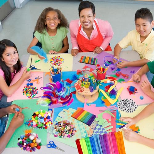 Package Includes: Craft Kits included pipe cleaners, wooden sticks, buttons, adhesive googly eyes, pompoms, feathers, beads, and sequins